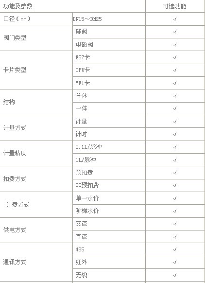 本产品适用于多用户公共用水场合,用户凭卡预购水费,将卡放在卡感应区开始供水,智能水表根据用量核减剩余量,取走卡停止供水。本产品可扩展无线远传功能,实现多用户无线远传预付费功能。本系统与一表多卡(MF1/CPU卡)水控系统软件配套使用,完成用户建档、开户、远程抄控、销售查询、报表统计、票据打印等日常营业管理。适合于淋浴控制、公共用水控制、热水供应等场合。