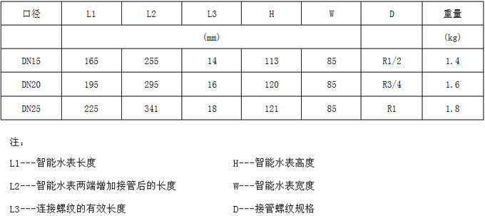 | 口径(DN) | 15mm | 20mm | 25mm |