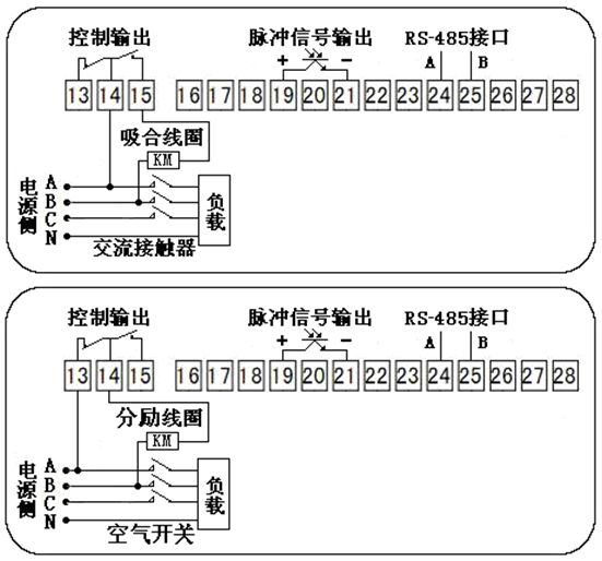 | 6、外附控电开关,电能表必须外接交流接触器或空气开关,通过控制交流接触器或空气开关线圈电流的通断来控制负载电流的通断; |
