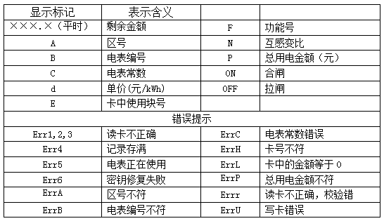 | 5、电能表合闸供电后,电能表将根据用电量和设定的电价自动核减金额,显示器动态显示剩余金额; |
