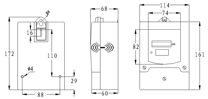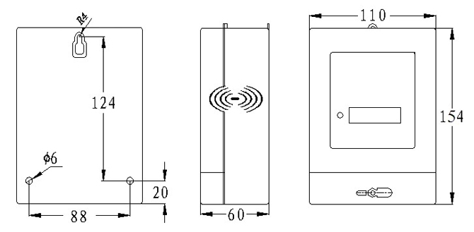 | 单显示电能表外形尺寸图 |