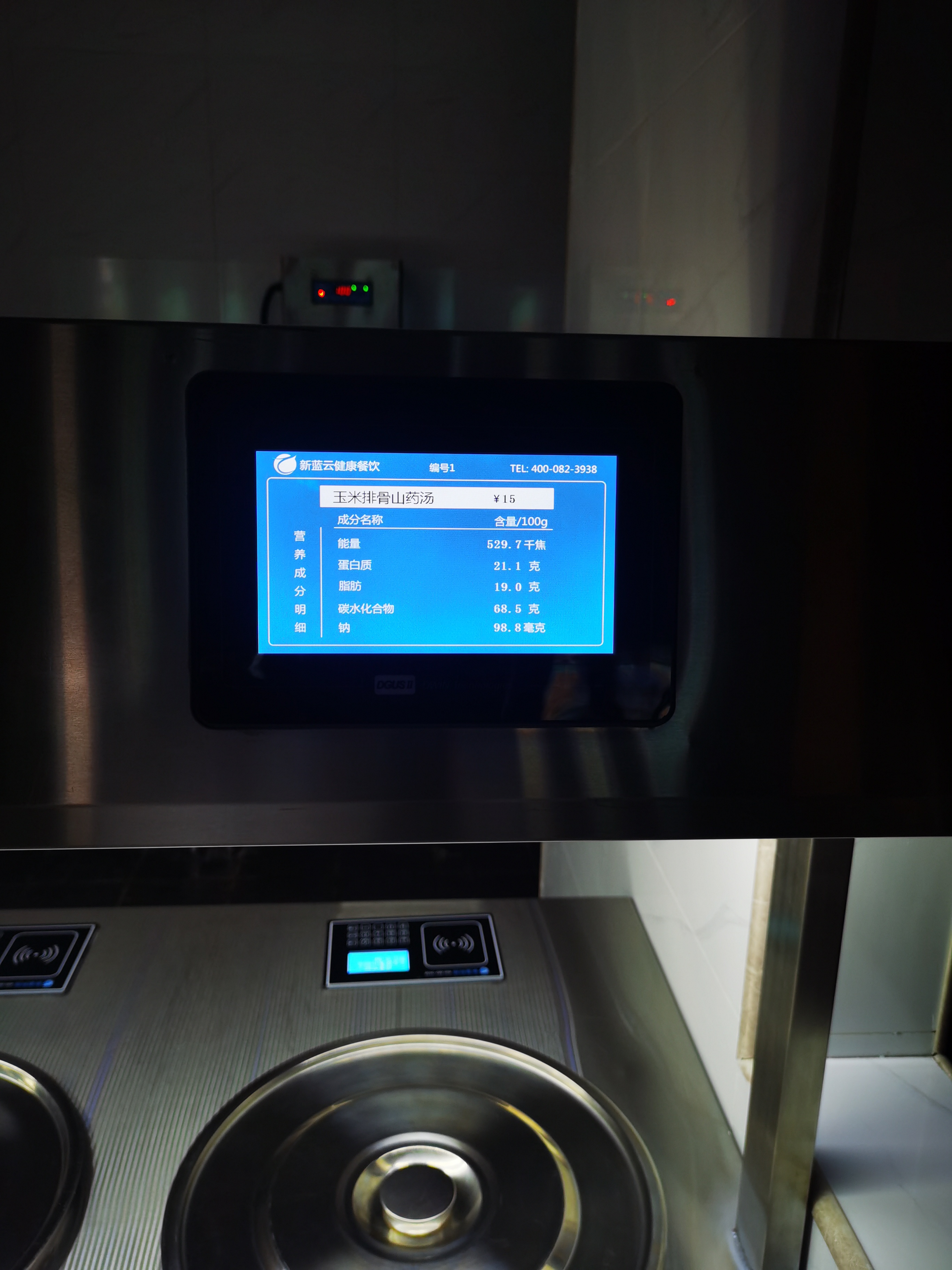 营养价签:嵌入在保温台二层展示菜品营养成份 菜品营养分析,可显示菜品五大营养元素分析